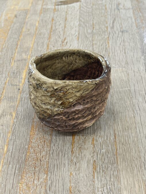 土:信楽特コシ土釉薬:柿天目釉?+白萩釉? ワラ白釉を掛けるつもりが、違う釉薬をかけてしまった。只々汚い