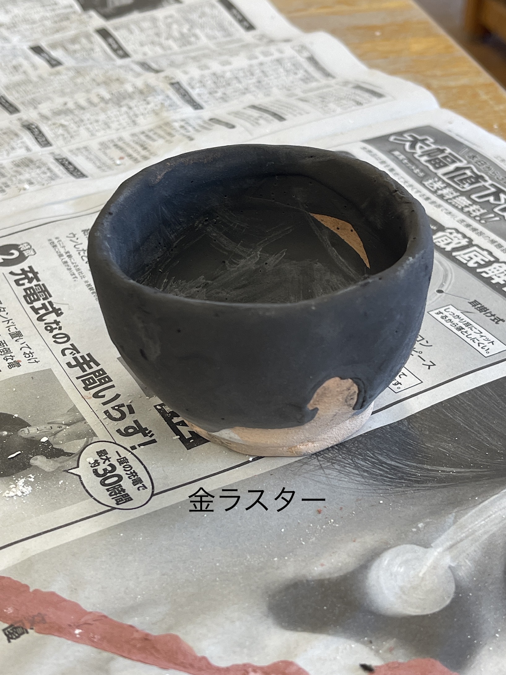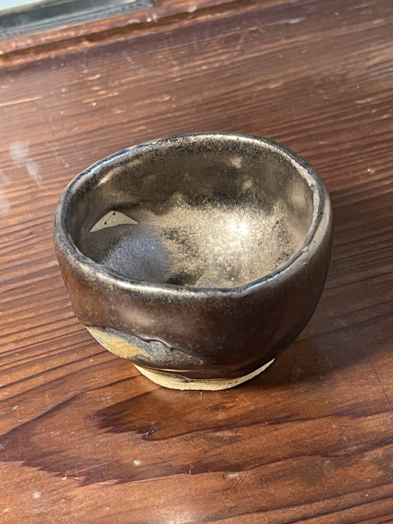 金ラスターぐい吞み 土:信楽特コシ土?釉薬:金ラスター付け高台 呉須を塗ったが金ラスターを掛けてみる。呉須がチラ見えする様に、一部釉薬を削ってみる。金ラスターはパキパキ削っても溶けて滑らかな削り跡となった。 2023年10月11日 In 白土 信楽特コシ土 呉須 金ラスター Next post →