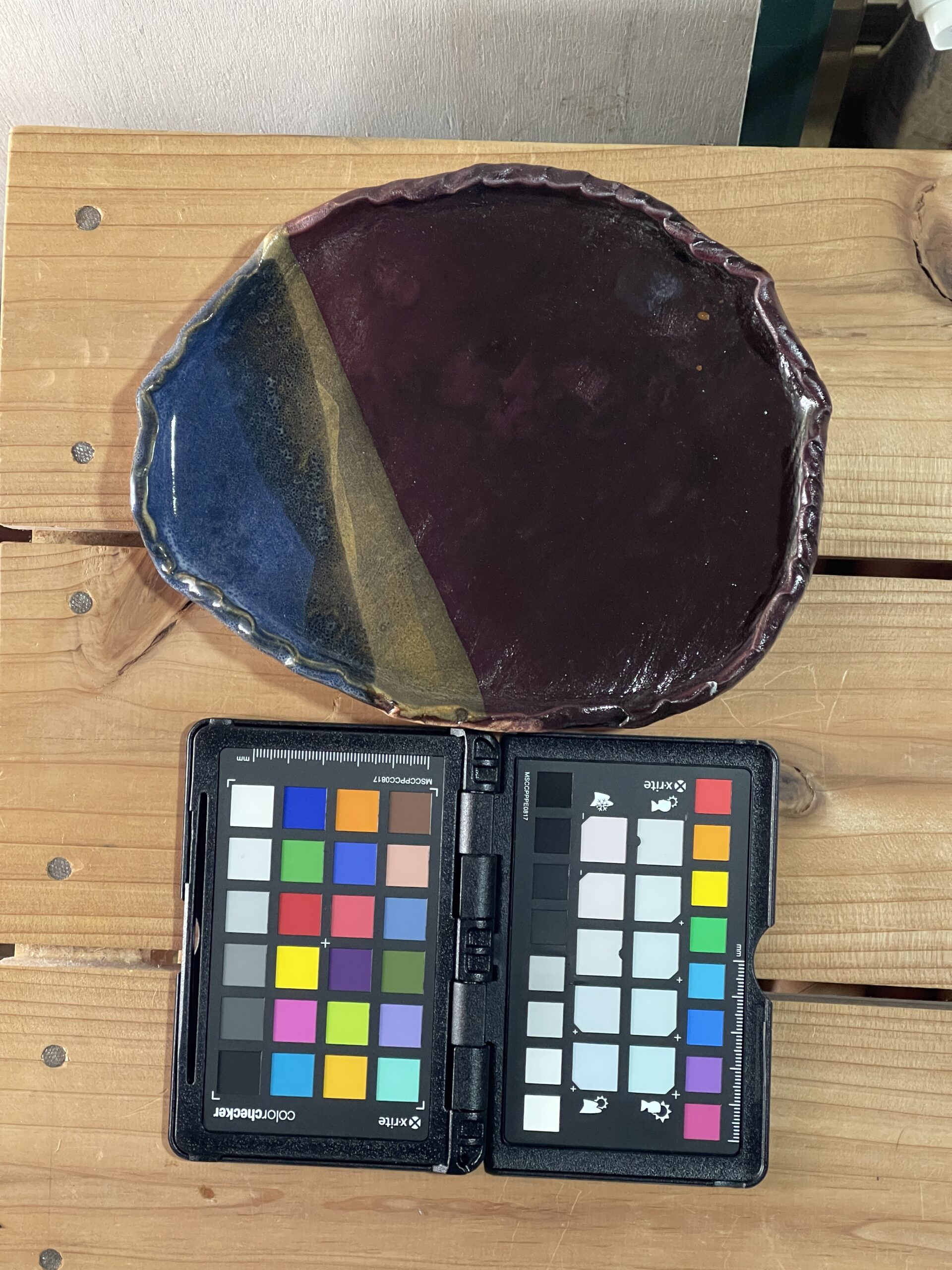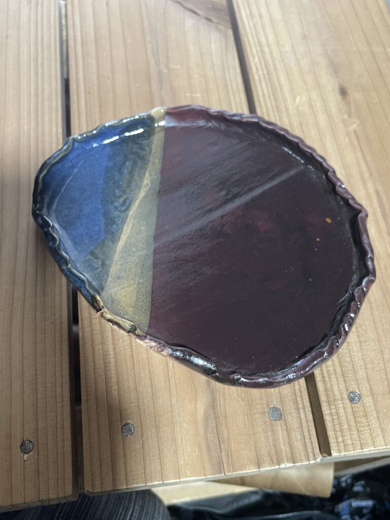 最初の皿 土:信楽特コシ土釉薬:黒天目、酸化ナマコ、透明釉 そのまま乾燥させたので、浮いてしまった。乾燥時にビニールに水入れて重しにするんだそう 2023年10月12日 In 失敗作, 寒色系, 白土 信楽特コシ土 透明釉 酸化ナマコ 黒天目 ← Previous post Next post →